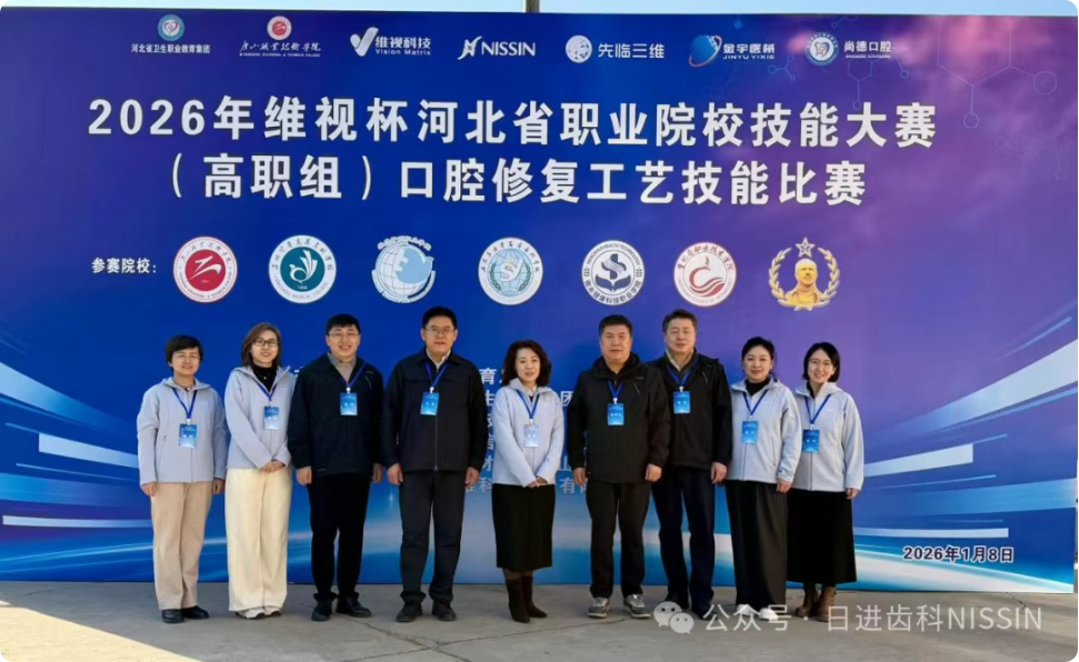 1月8日,2026年河北省职业院校技能大赛(高职组)口腔修复工艺技能比赛在唐山职业技术学院圆满落幕。本次大赛由河北省教育厅、河北省卫生职业教育集团联合主办,唐山职业技术学院承办,维视医疗信息科技 (山东) 有限公司、日进齿科材料(昆山)有限公司、先临三维科技股份有限公司协办,来自全省7所院校的11支队伍参加比赛。