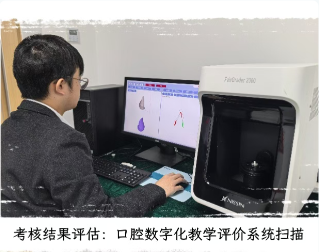 为确保考核的客观公正性,本次考核的牙体预备和窝洞预备的作品,除考官评委的现场打分制外,还采用了口腔数字化结果评价系统的精确评估,由日进齿科材料(昆山)有限公司提供全方位的扫描技术支持。